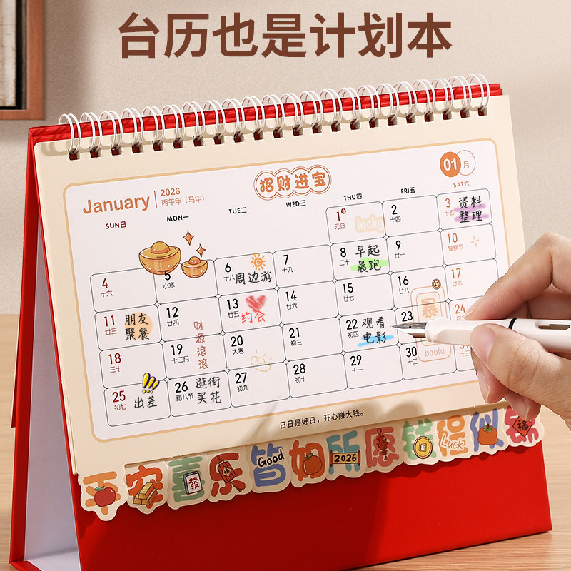 台历2026年新款日历定制logo创意简约小清新韩式办公年历个性中国风桌面摆件商务工作记事计划本订制广告月历