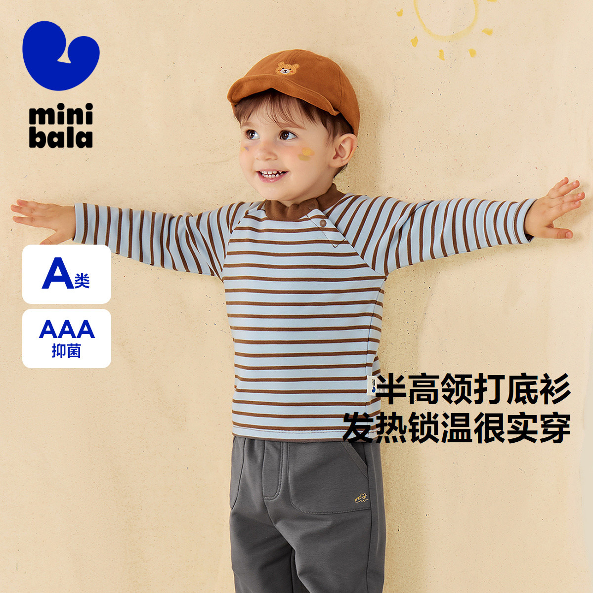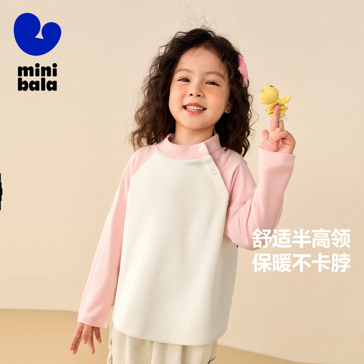 [发热抑菌]迷你巴拉巴拉男女童长袖T恤2025秋新品高领儿童打底衫