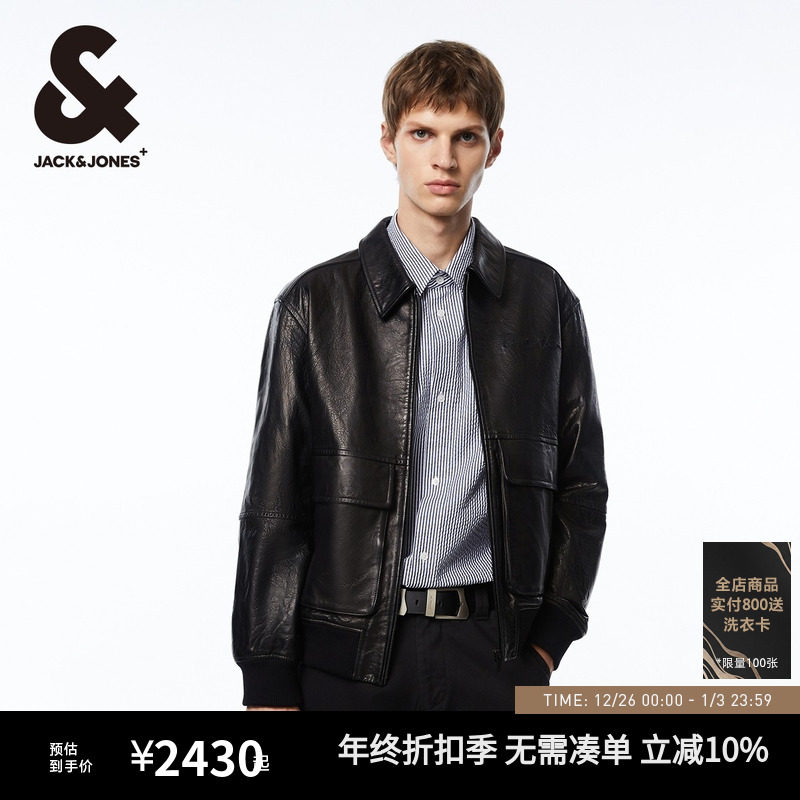 杰克琼斯男装秋季新款美式机车风皮衣字母短款翻领宽松夹克外套