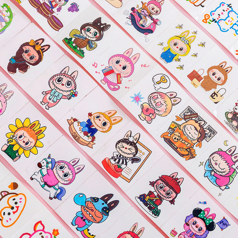 啦不布labubu纹身贴儿童女孩安全无毒正版贴贴纸可洗学生可爱水印贴防水贴卡通水转印网红贴画盒装纹身贴纸