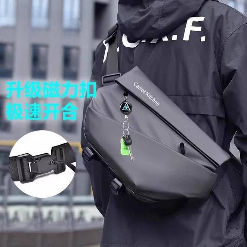磁吸扣男士斜挎包大容量机能胸包通勤骑行机车背包运动单肩包防水