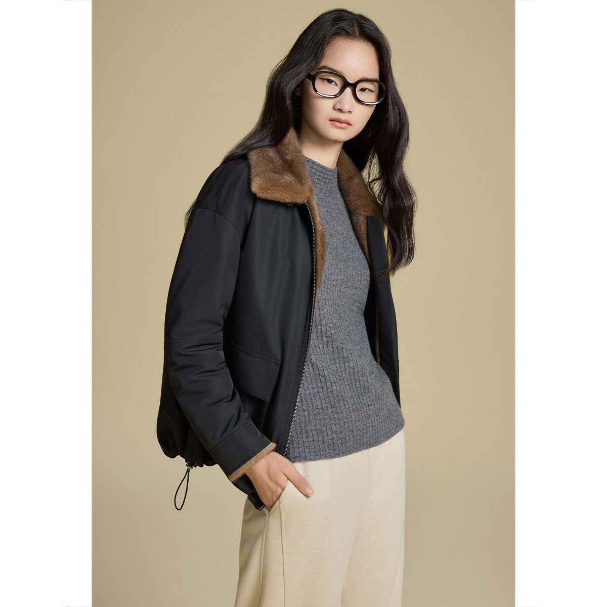 【李佳琦直播间】雪中飞2025鹅绒男女貉子毛领复古工装派克羽绒服