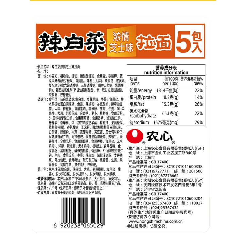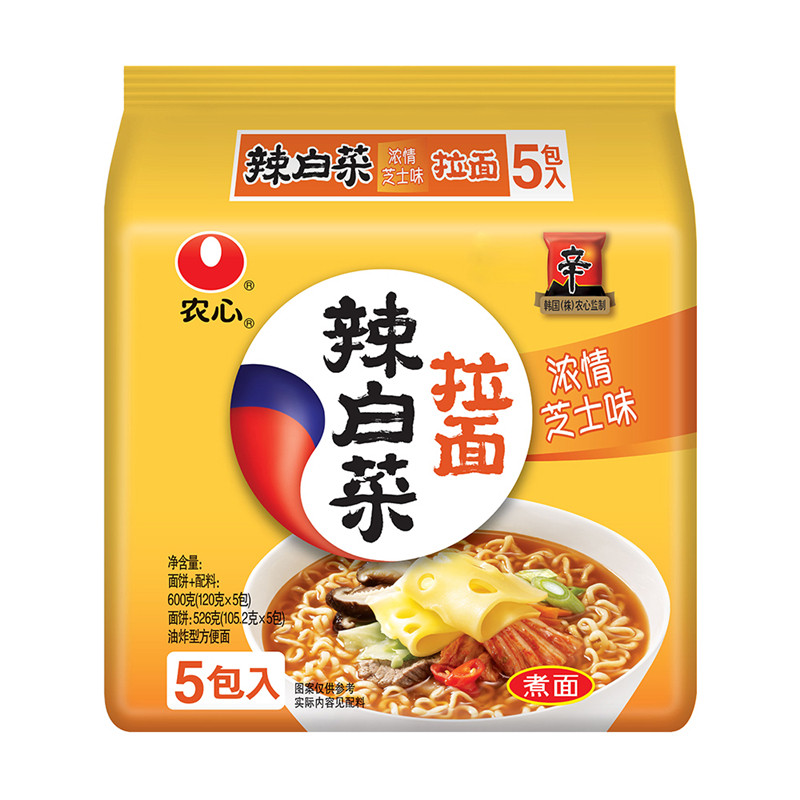 农心辣白菜浓情芝士味拉面方便面泡面懒人速食夜宵120g*5包