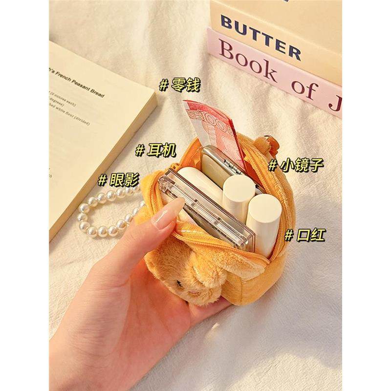 可爱小熊毛绒零钱包女耳机包学生包包钥匙挂件口红迷你便携小包