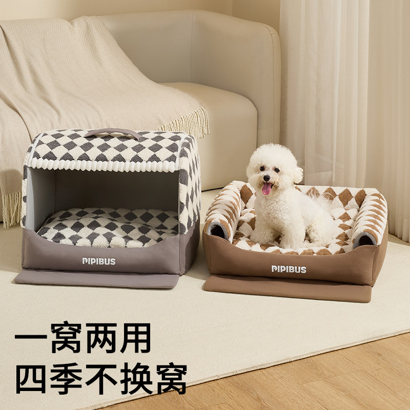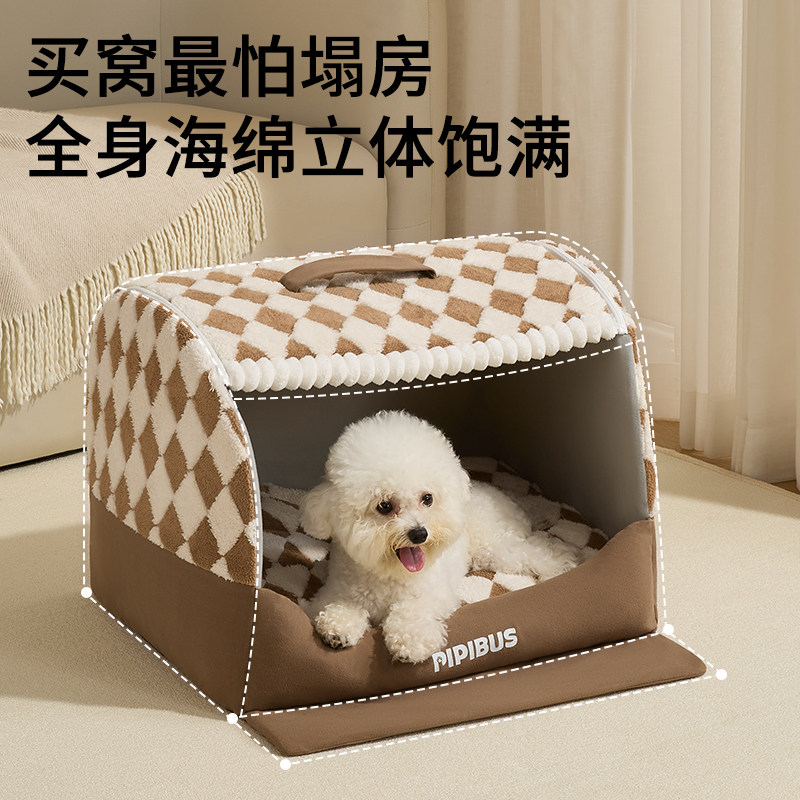 冬季保暖宠物窝狗窝猫窝封闭式安全感带门帘可拆洗房子别墅半封闭