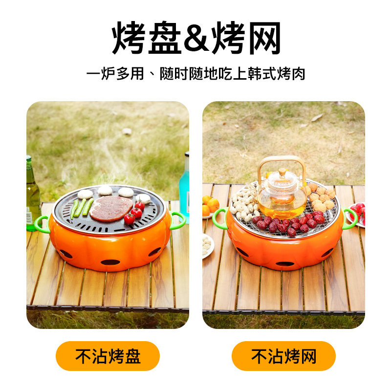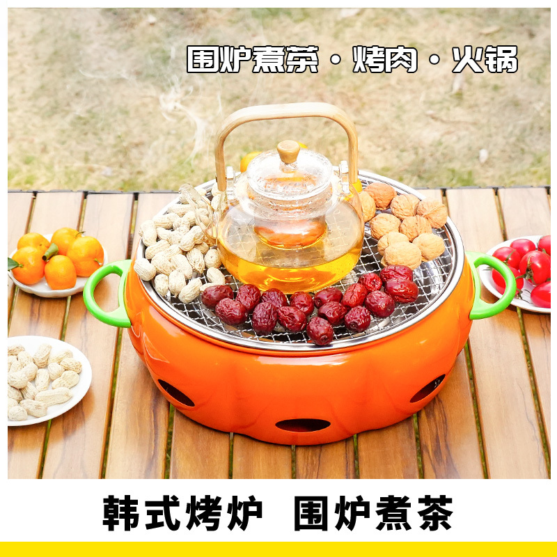 新款南瓜炉围炉煮茶烧烤肉围炉全套火锅烤肉炉多功能取暖露营野炊