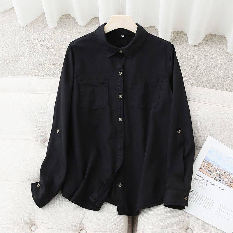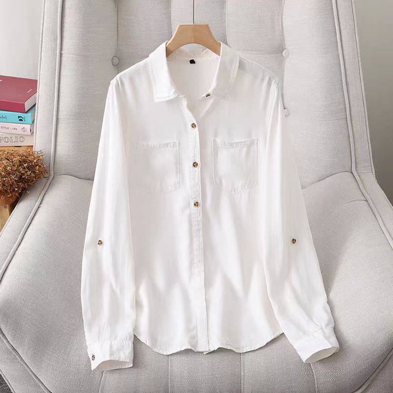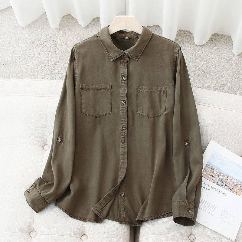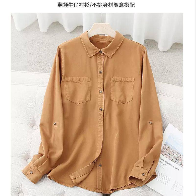 牛仔高级感天丝衬衫女长袖2023正装百搭复古衬衣叠穿打底外穿上衣