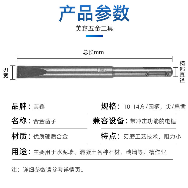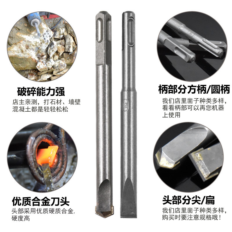开槽铲墙王尖扁铲镐头钻头电锤合金凿子六角柄方柄电镐铲头混凝土