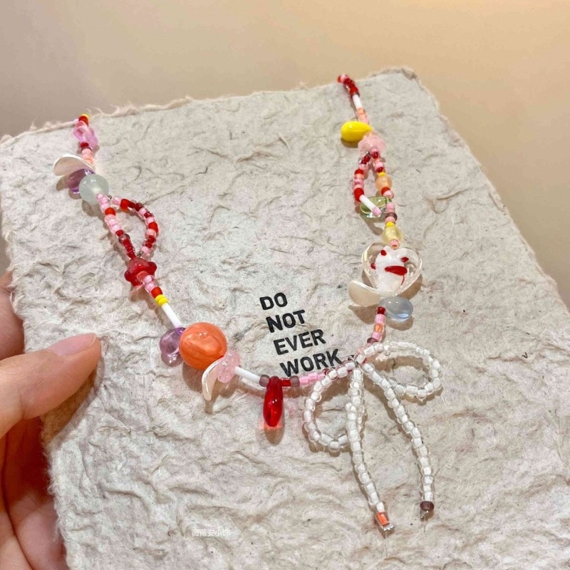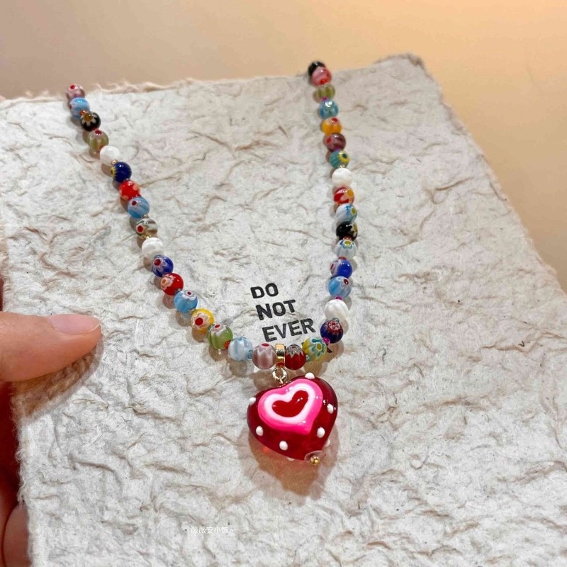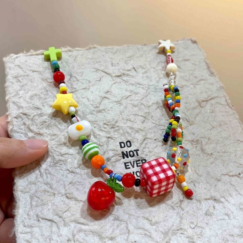 「苹果乐园」多巴胺彩色星星串珠项链2025新款轻奢夏日锁骨链爱心
