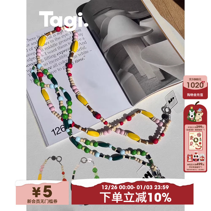 Tagi. 积木串串木头斜挎肩带串珠手机链便携全系列适用手机配件挂