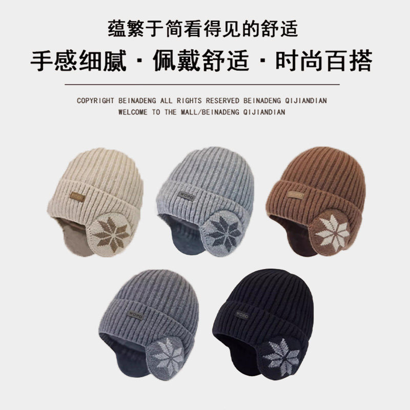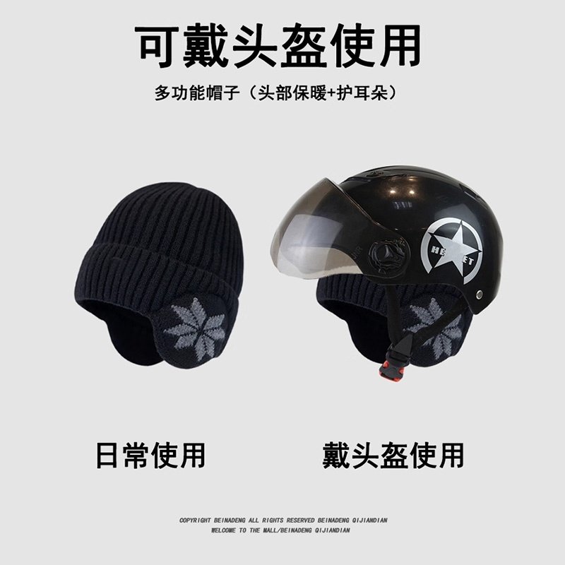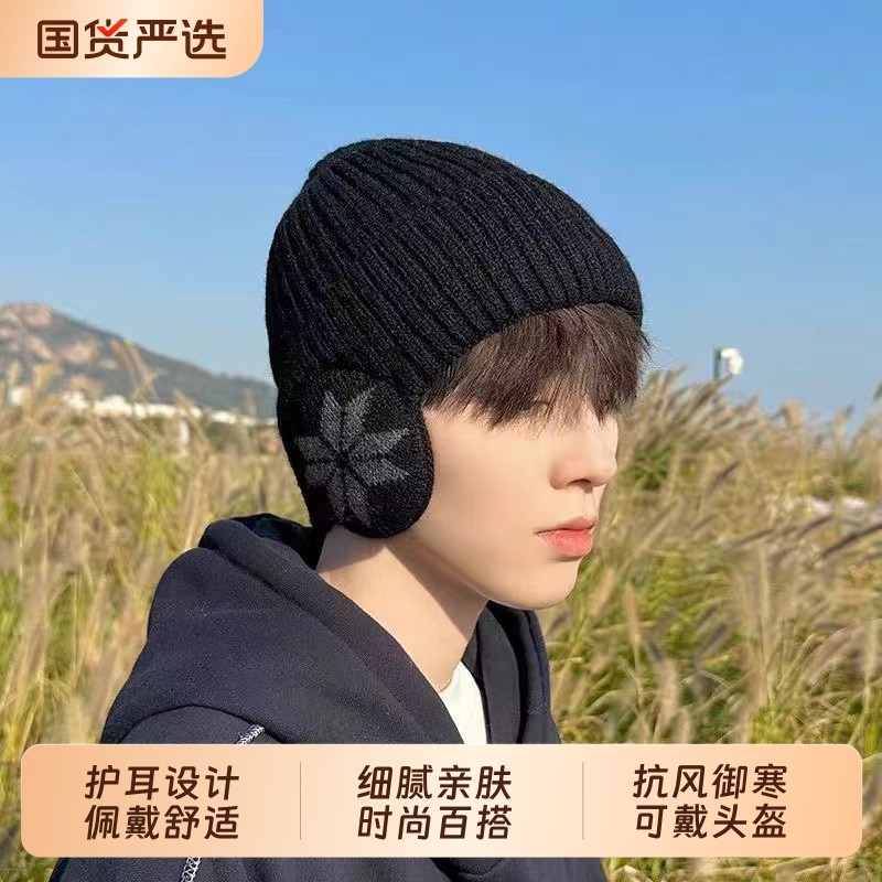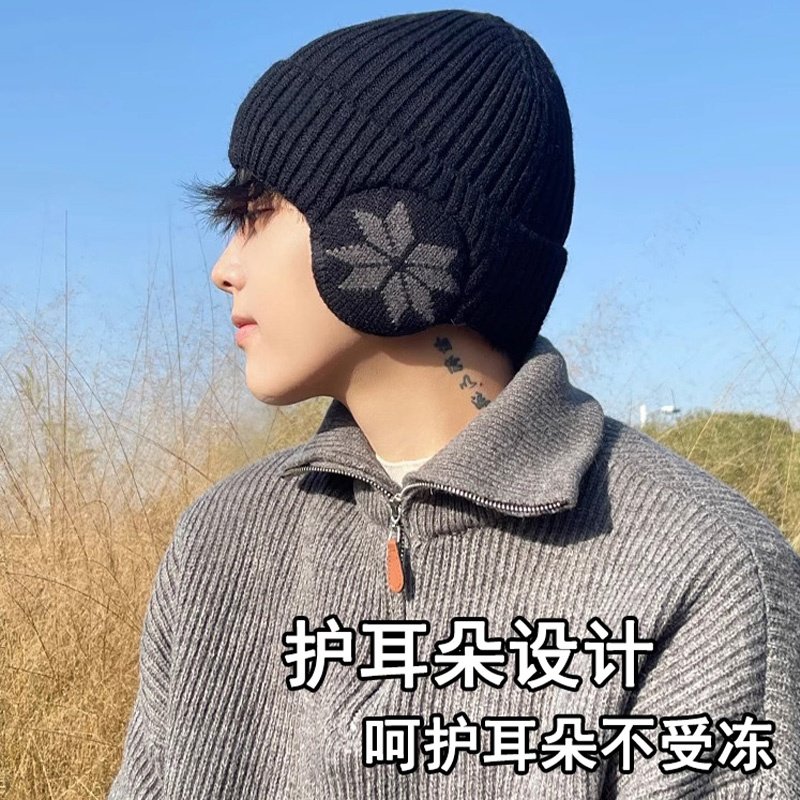 帽子男冬季骑行护耳帽保暖大头围冷帽毛线帽男包头加绒针织帽头盔