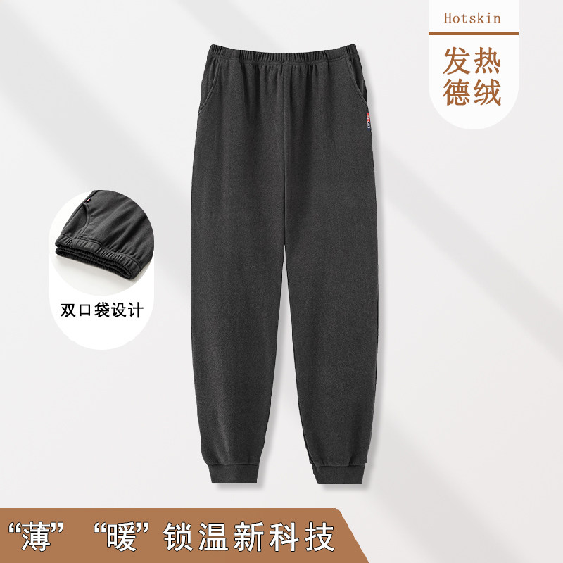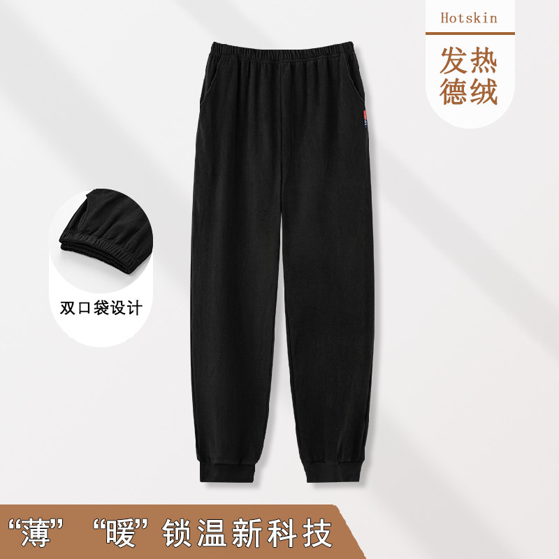 睡裤男秋冬季保暖德绒束腿宽松长裤秋天加肥加大码中年青年家居裤