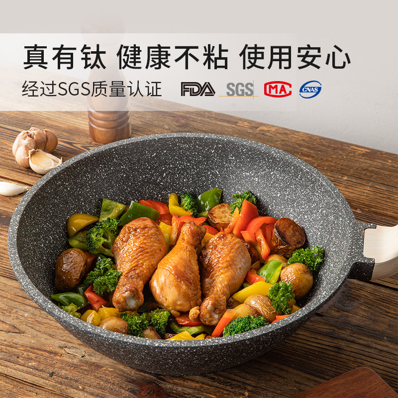 炊大皇无氟涂层不粘锅炒锅家用聚油不沾锅燃气电磁炉用钛锅炒菜锅