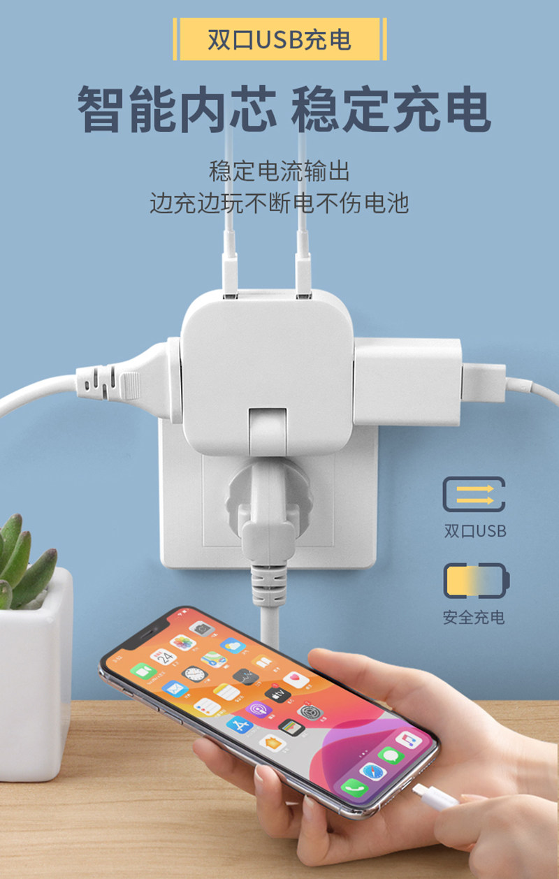 旋转折叠超薄USB插座转换器电视柜后沙发床边缝隙万能转向充电头