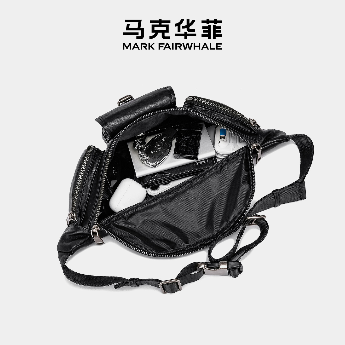 Mark Fairwhale/马克华菲男士真皮单肩斜挎胸包商务通勤休闲小包