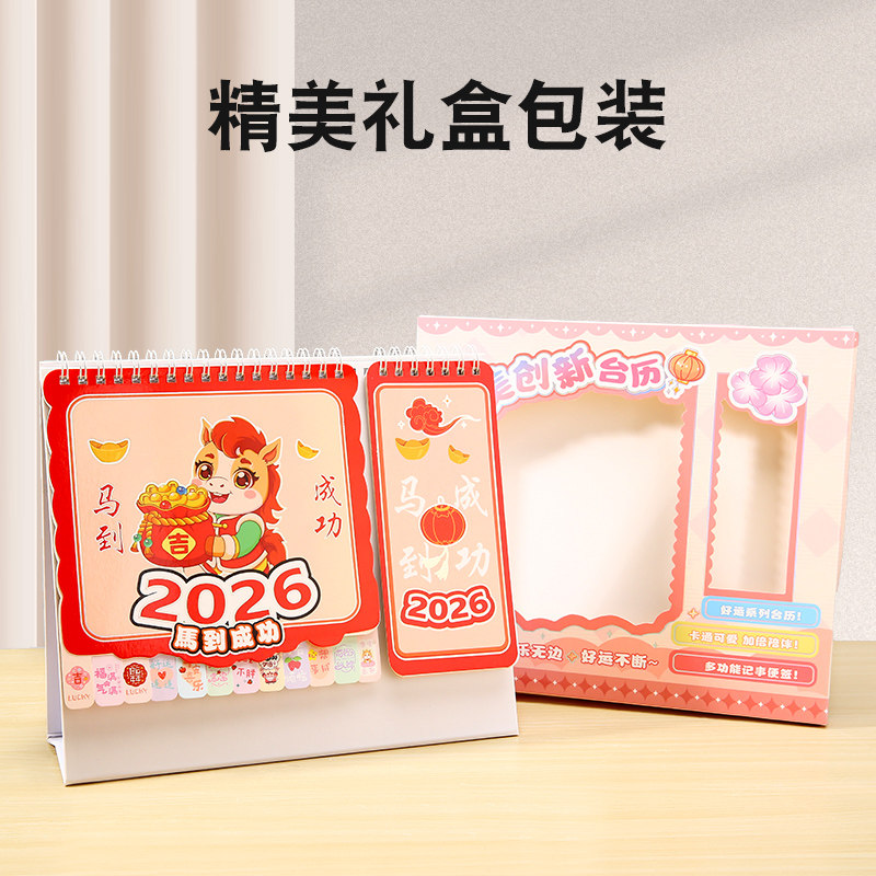 2026年新款台历创意卡通日历全年马年迷你小台历桌面摆件办公室学生每日计划表工作自律打卡记事mini计划月历