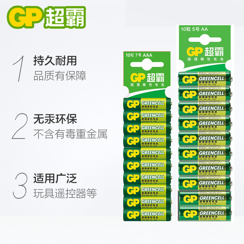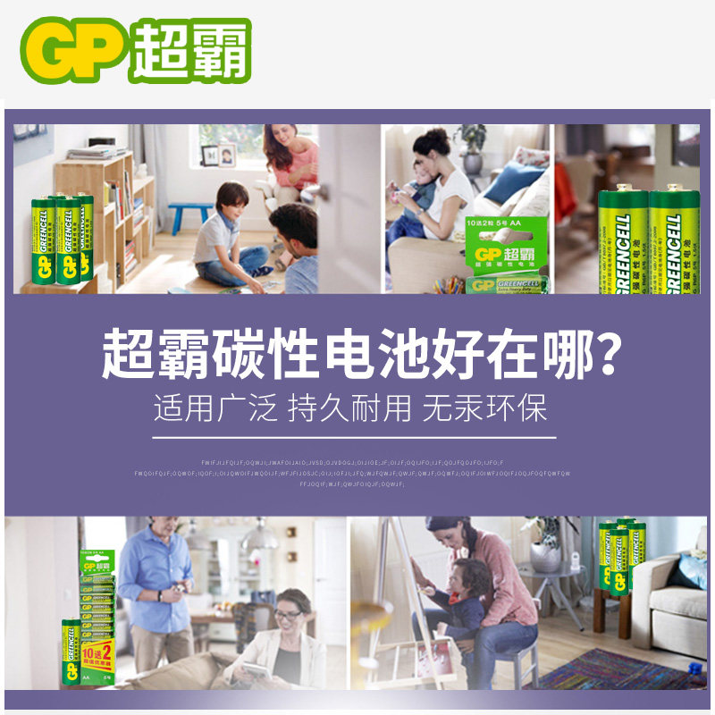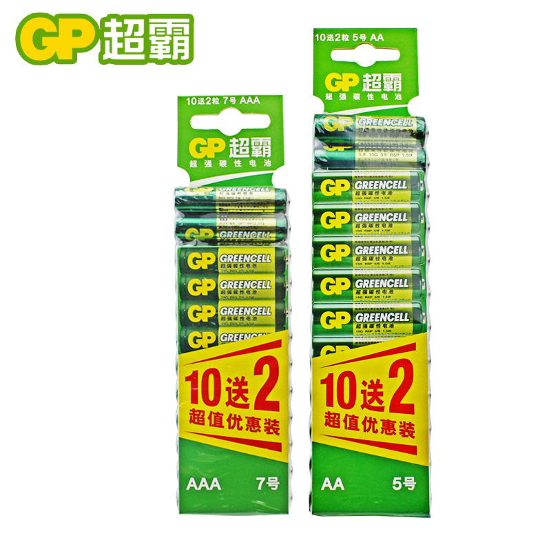 GP超霸5号电池7号碳性1.5v电池AA五号七号电视适用格力空调遥控器钟表aaa电池玩具挂钟鼠标一次性干电池12粒