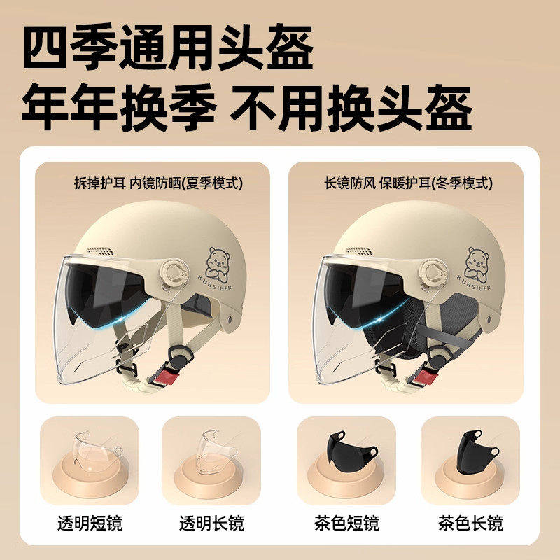 电动车头盔女3C四季通用冬季保暖男士半盔可拆围脖护耳可拆安全帽