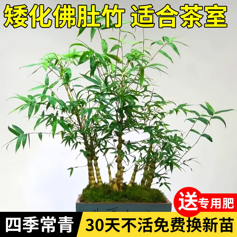 佛肚竹盆栽老桩盆景书房桌面绿植四季好养耐阴竹子苔藓球水培植物