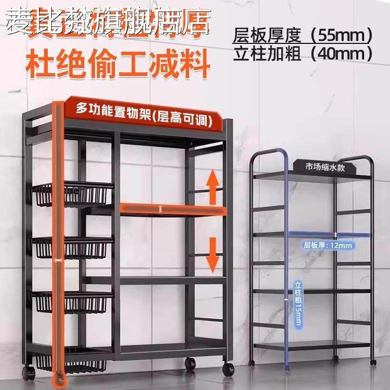 麦比梵厨房置物架可移动家用落地书架多层收纳层架杂物整理架多功能置物架摆件饰品垫垫床笠拉车
