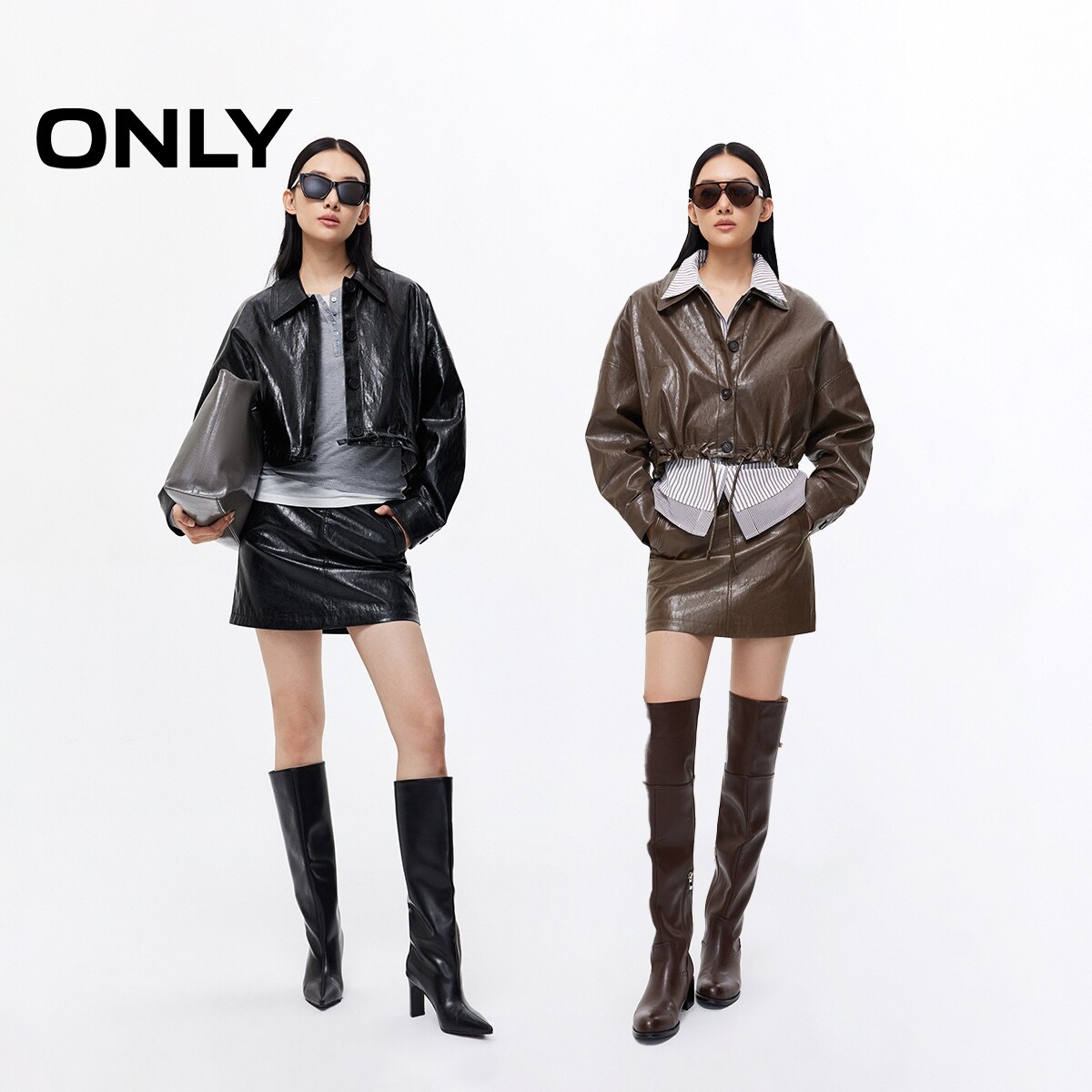 ONLY春季随性街头运动裙实用口袋抽绳A字PU短裙半身裙女