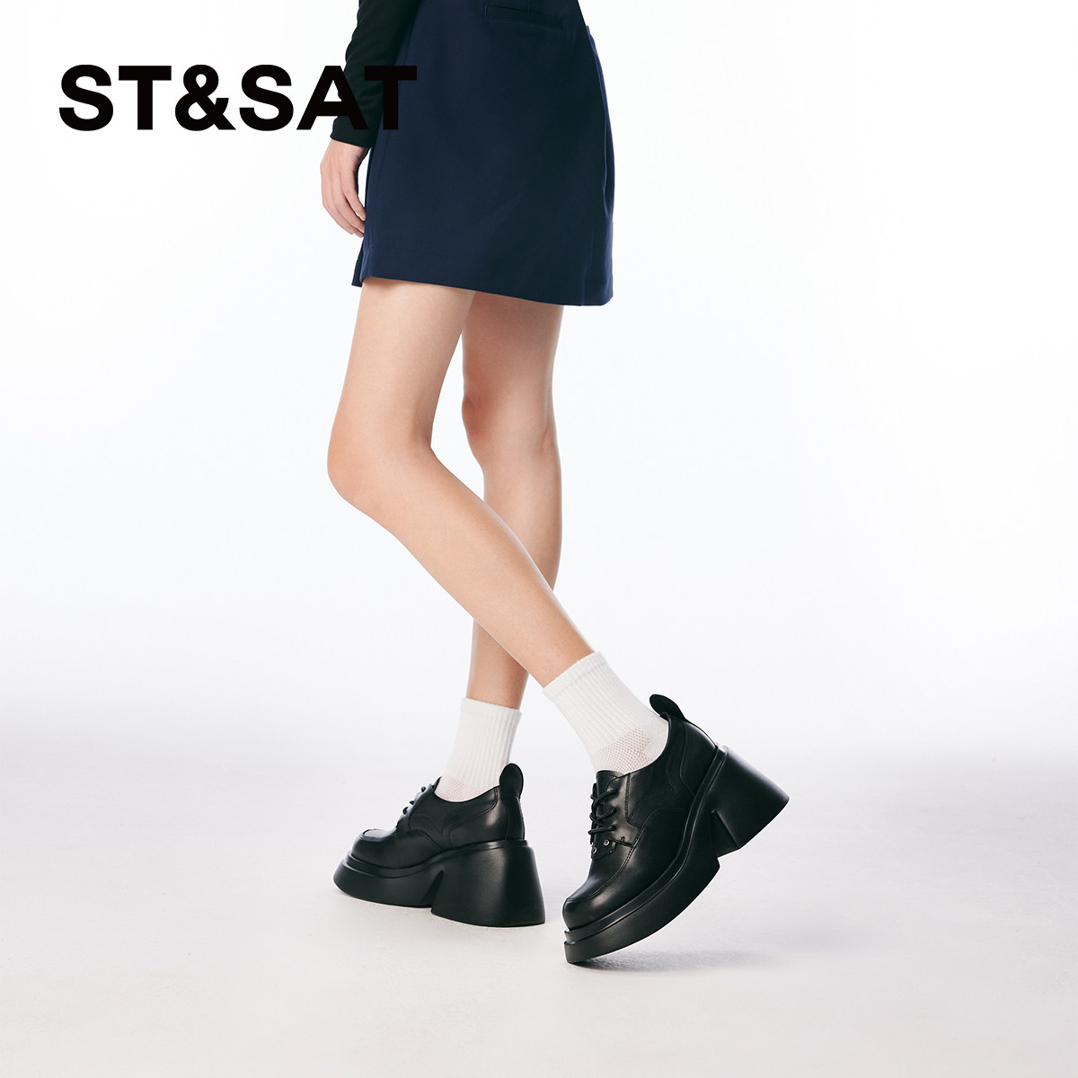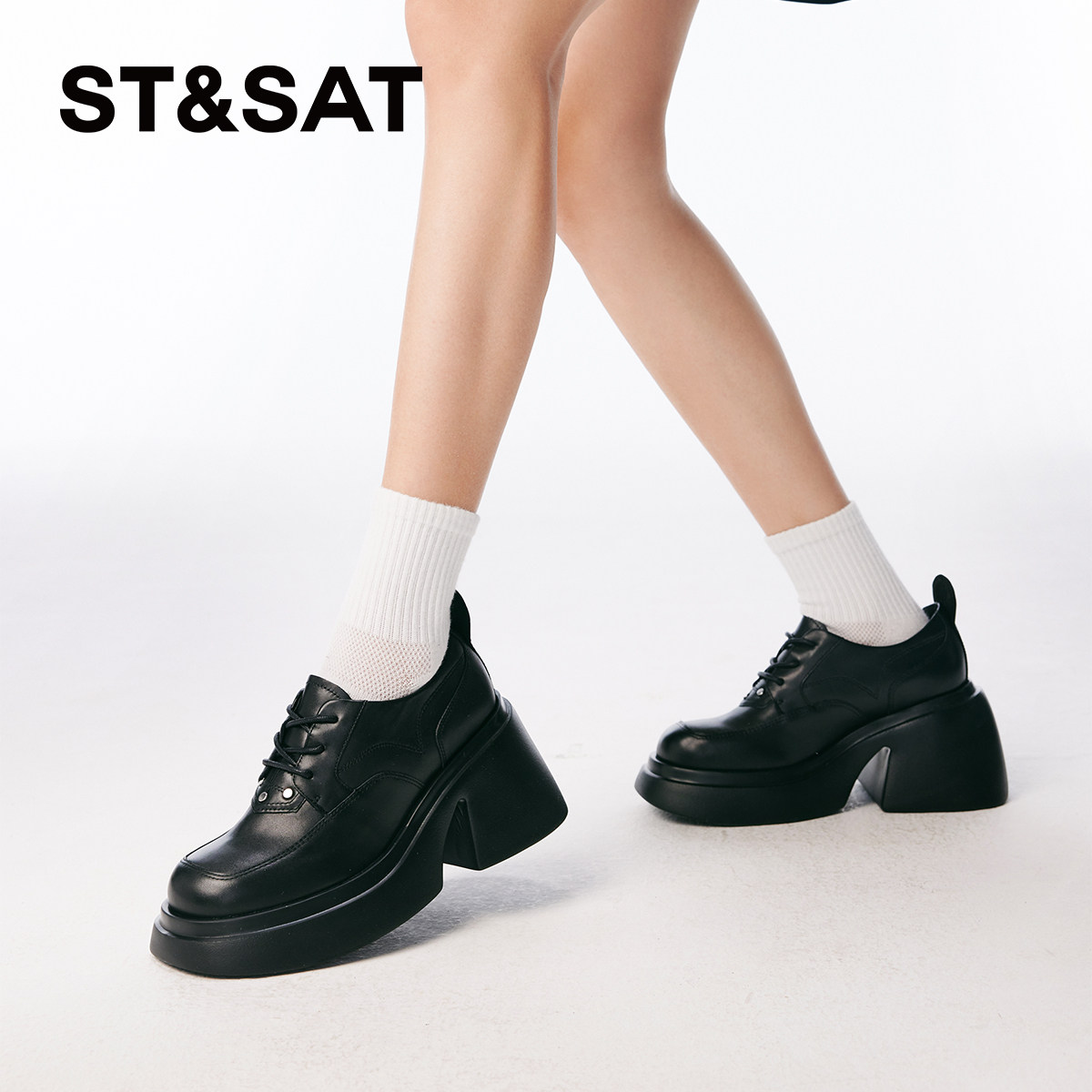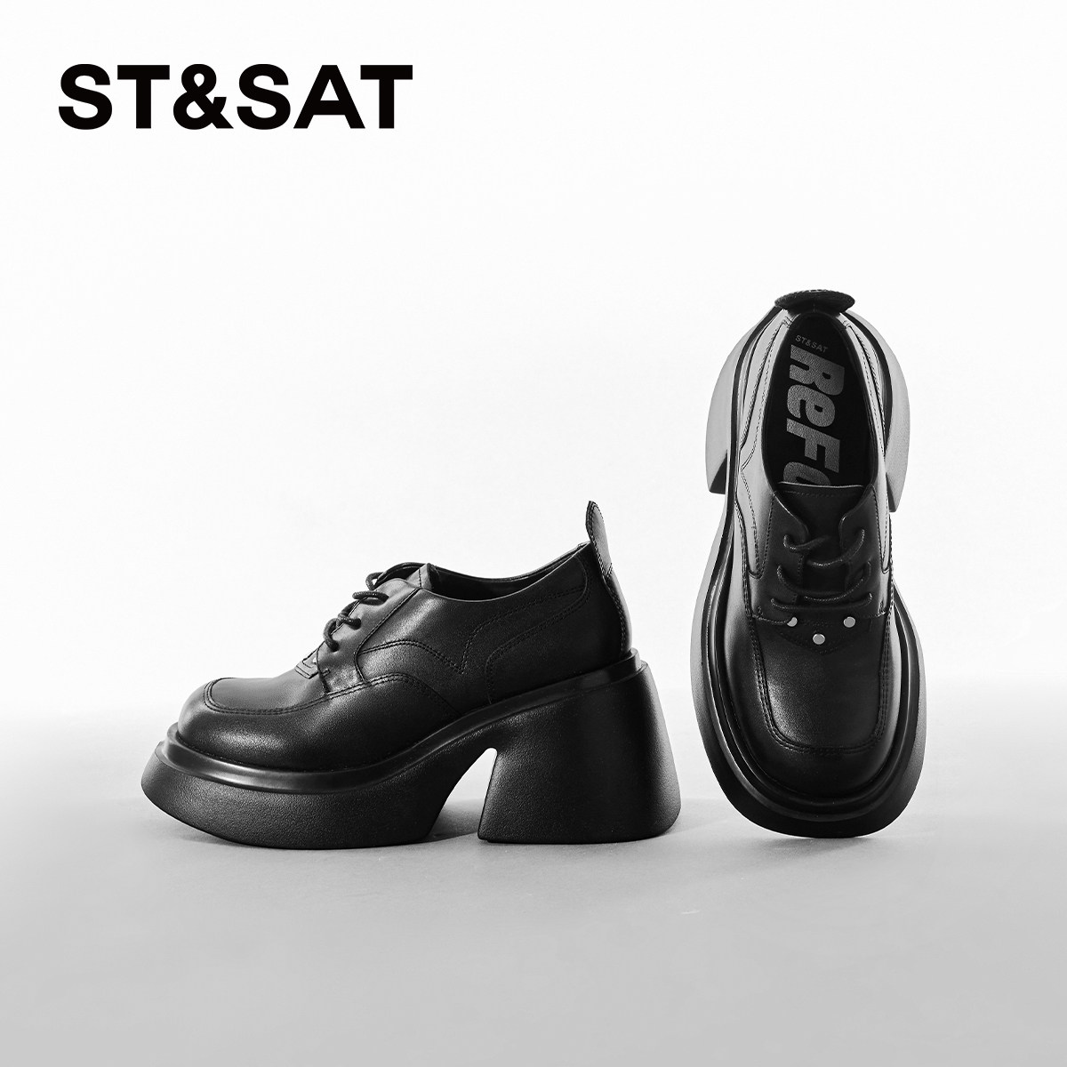 St&Sat星期六深口单鞋24春新款厚底高跟系带皮鞋女SSC1112026