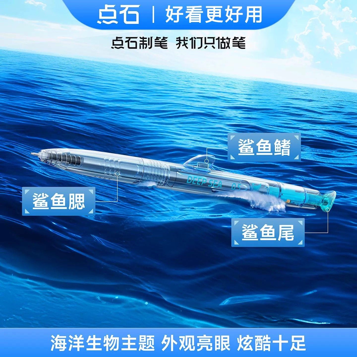 点石制笔深海舱巨齿鲨按动中性笔新款限量版速干顺滑透明笔身创意文具苍龙隐藏款双珠书写签字笔航海时空舱