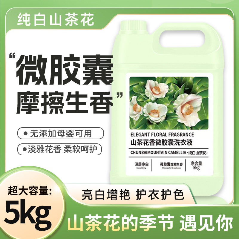 山茶花香氛洗衣液10斤持久留香母婴深层洁净除污渍柔顺家庭实惠装