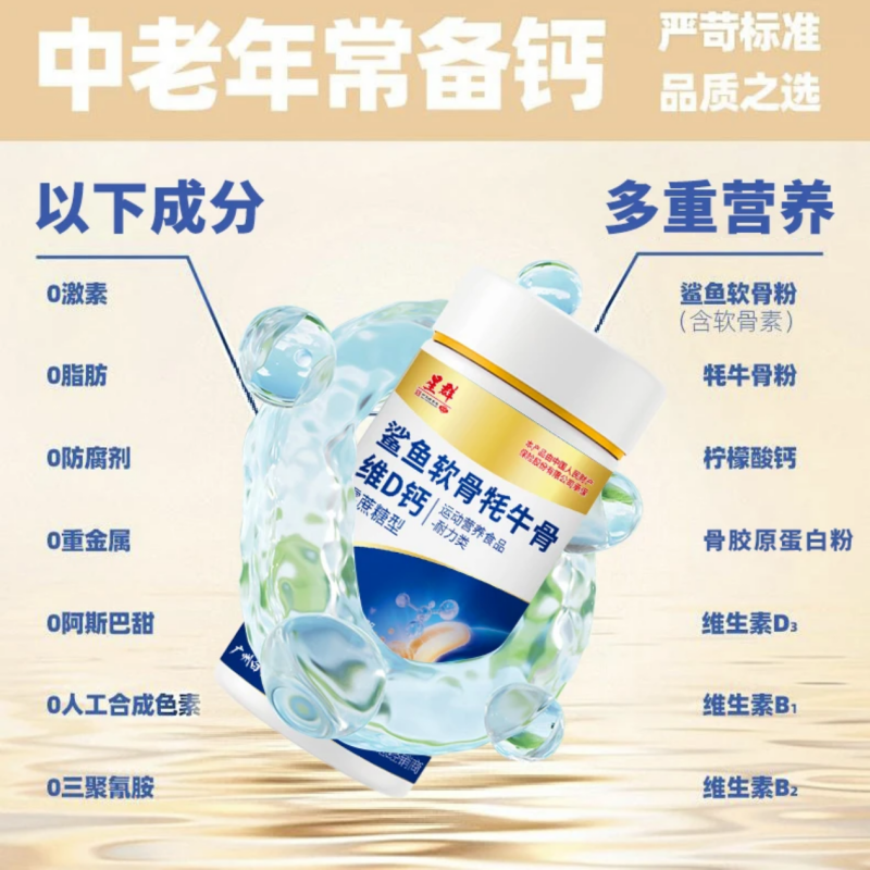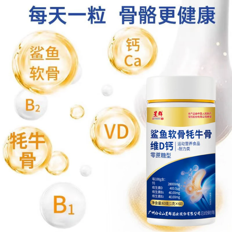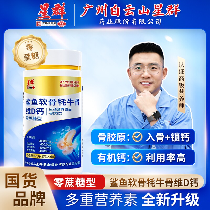 广州白云星群钙片中老年软骨鲨鱼牦牛骨VD钙抖音爆款正品碳酸钙