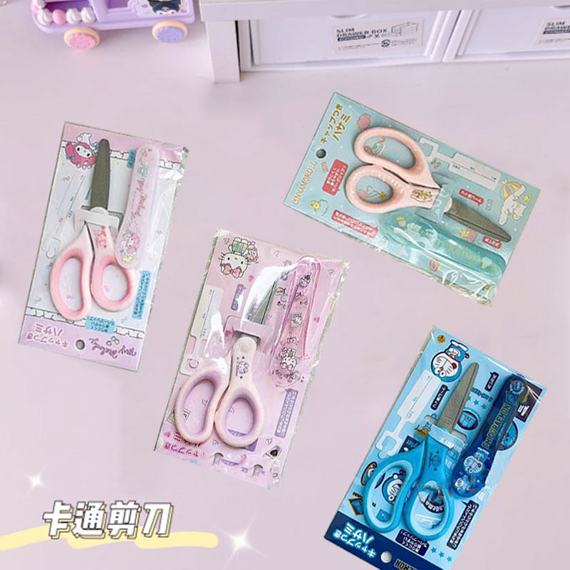 日本三丽鸥多啦A梦Kitty美乐蒂玉桂狗文具剪刀带套防生锈氟涂层