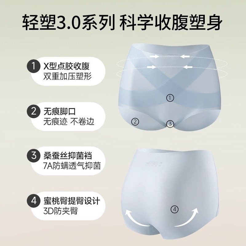 小肚子收腹内裤女强力薄款高腰收无痕夏季产后冰丝提臀裤塑身蜜桃