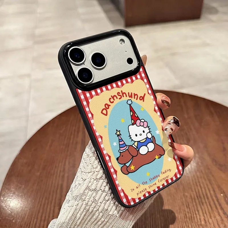 创意骑狗kt猫适用苹果16/17Promax手机壳IP15可爱14Pro鼓包皮纹13