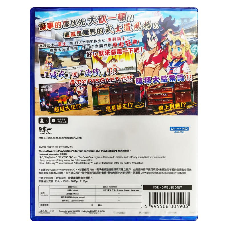 香港直邮 港行中文原封 PS5游戏光盘 魔界战记7 DISGAEA PS5游戏 现货