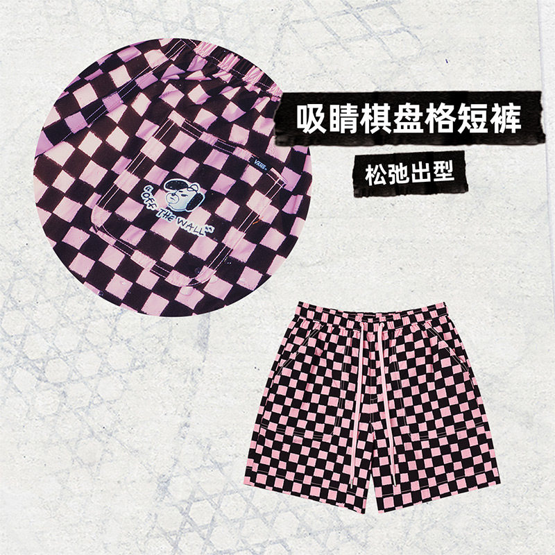 Vans范斯官方 亚洲艺术家联名女子梭织短裤棋盘格运动休闲裤