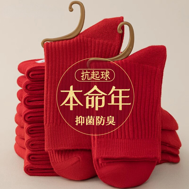 本命年大红色袜子男女同款秋冬季中筒袜2026属马新年结婚情侣长袜