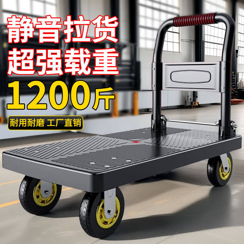 加厚拉货静音小推车手推车拖车搬运车家用平板车可折叠快递小拉车