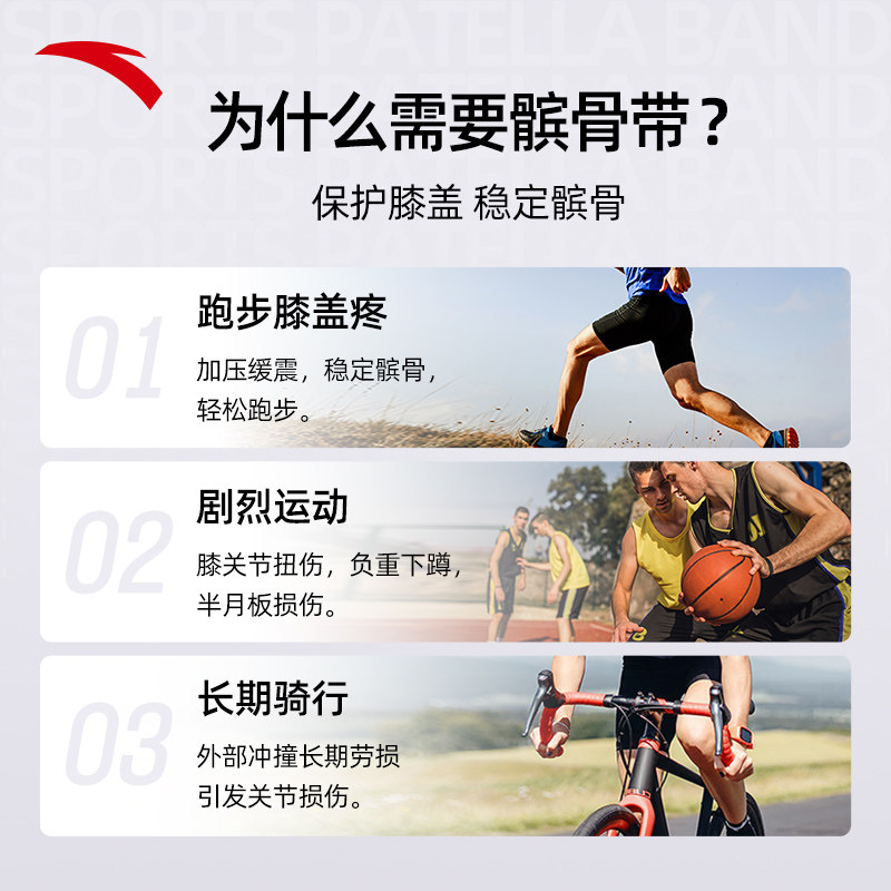 安踏髌骨带攀岩骑行登山羽毛球跑步关节防护缓震防撞专业运动护具