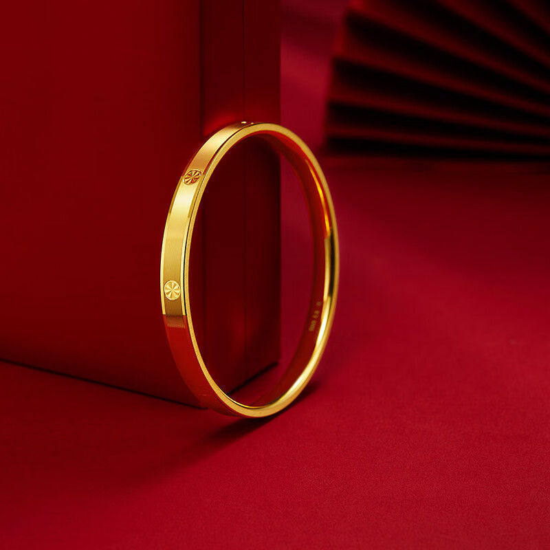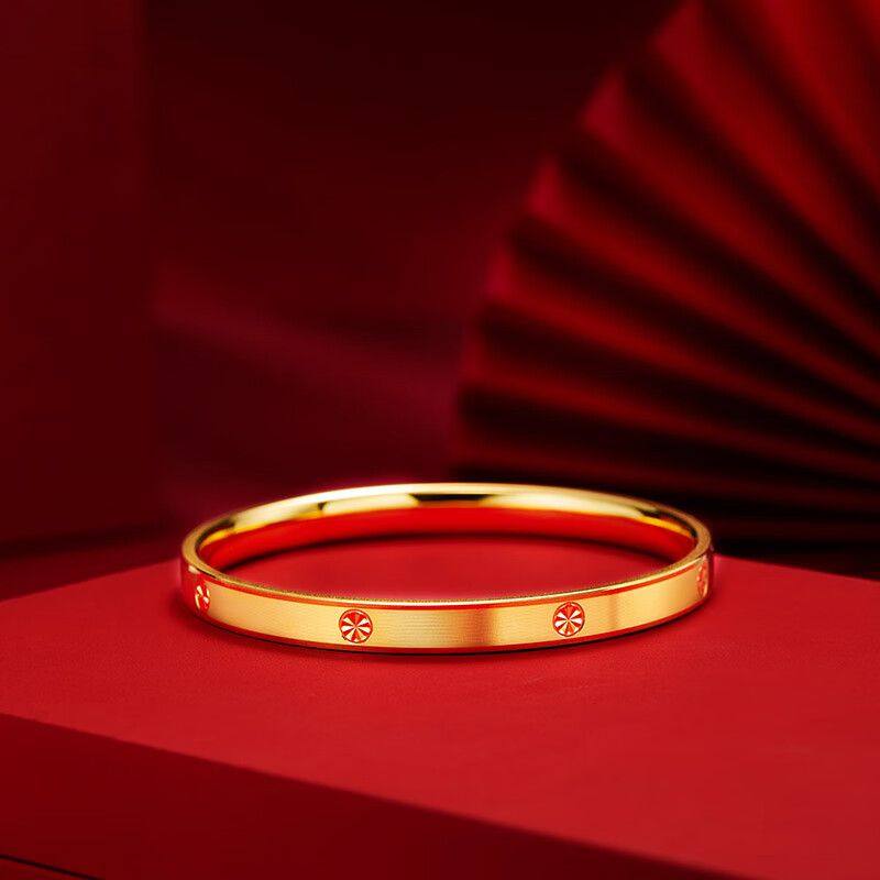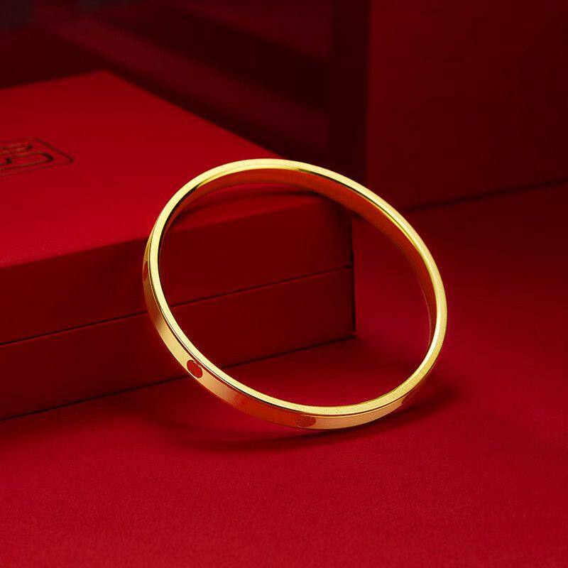 周六福古法银手镯女磨砂S999足银素圈镯情侣节日礼物送男友送女友
