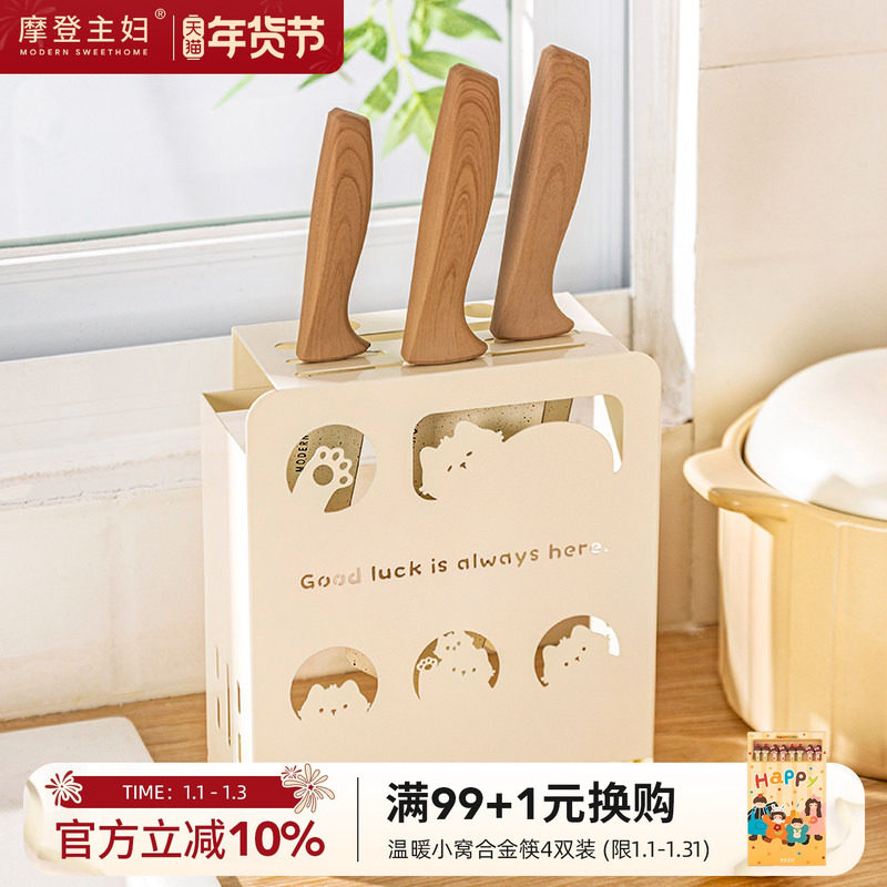 摩登主妇刀架置物架厨房小型菜板菜刀架一体台面款刀具套装收纳架