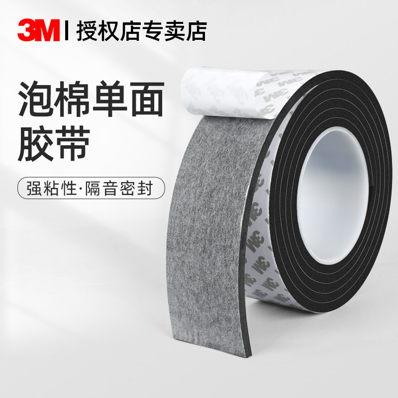 3m海绵单面胶带强力加厚EVA黑色高粘度泡棉泡沫无痕胶防震减震汽车隔音门框窗户缝隙防撞密封条5mm厚单面胶贴