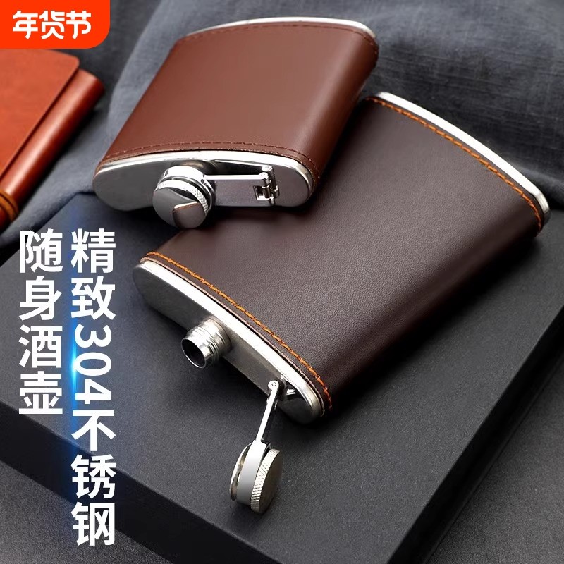俄罗斯小酒壶食品级304不锈钢随身便携式户外白酒扁酒瓶迷你1一2