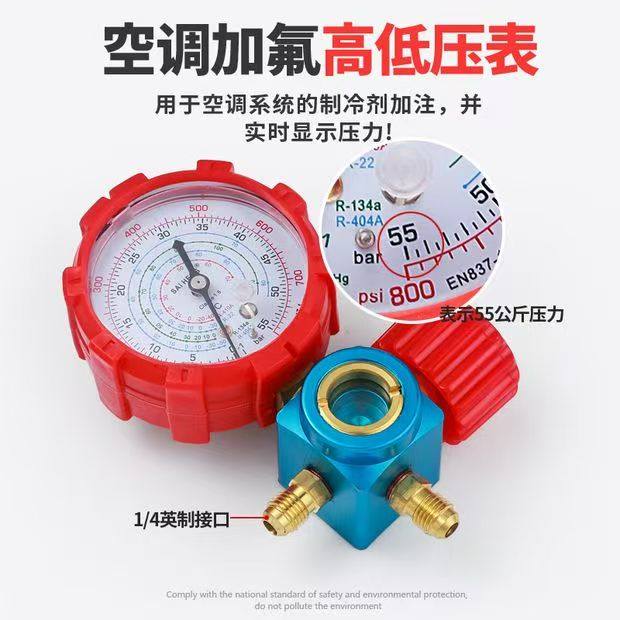家用空调R22R32加氟压力单表冷媒雪种加液汽车充氟表汽车加氟工具