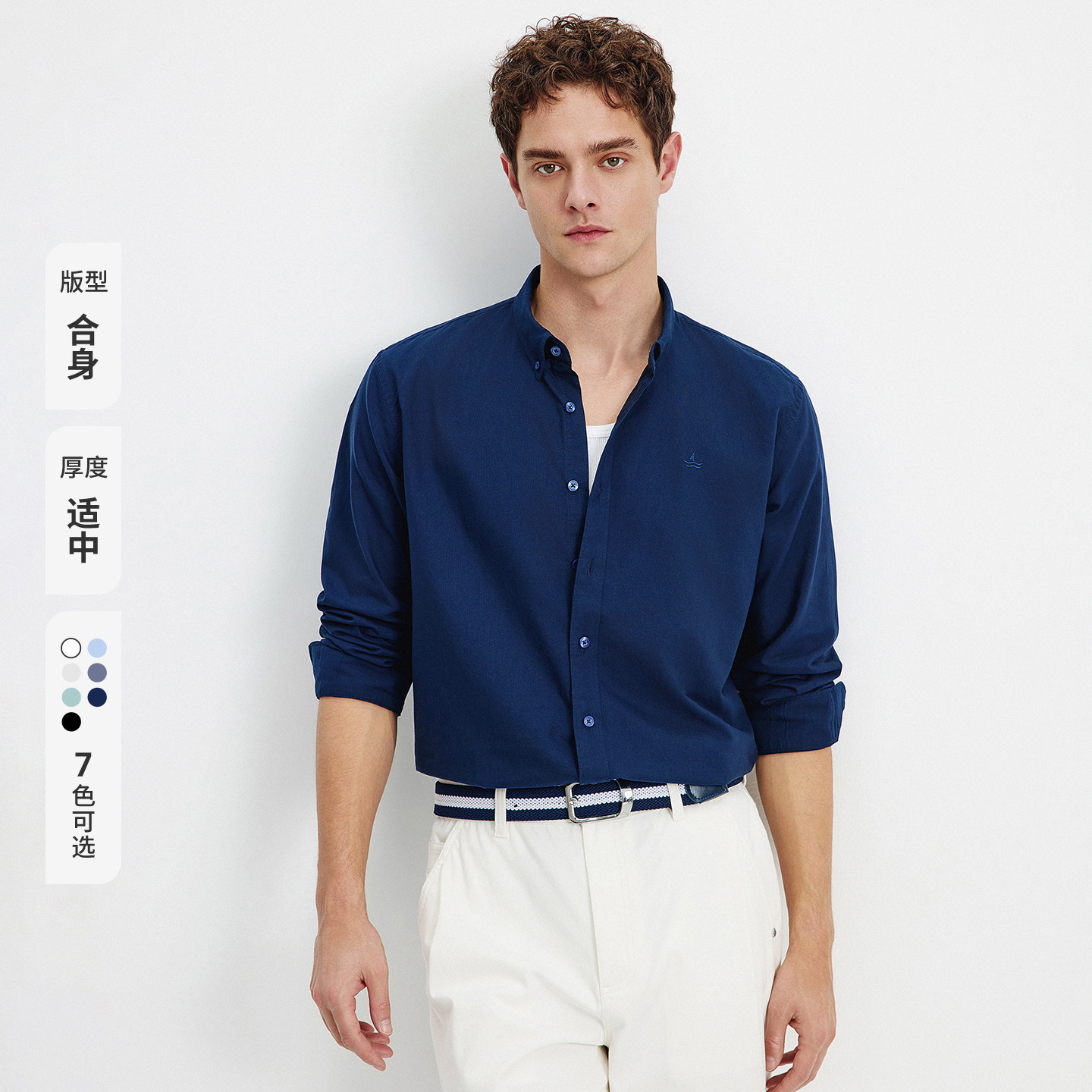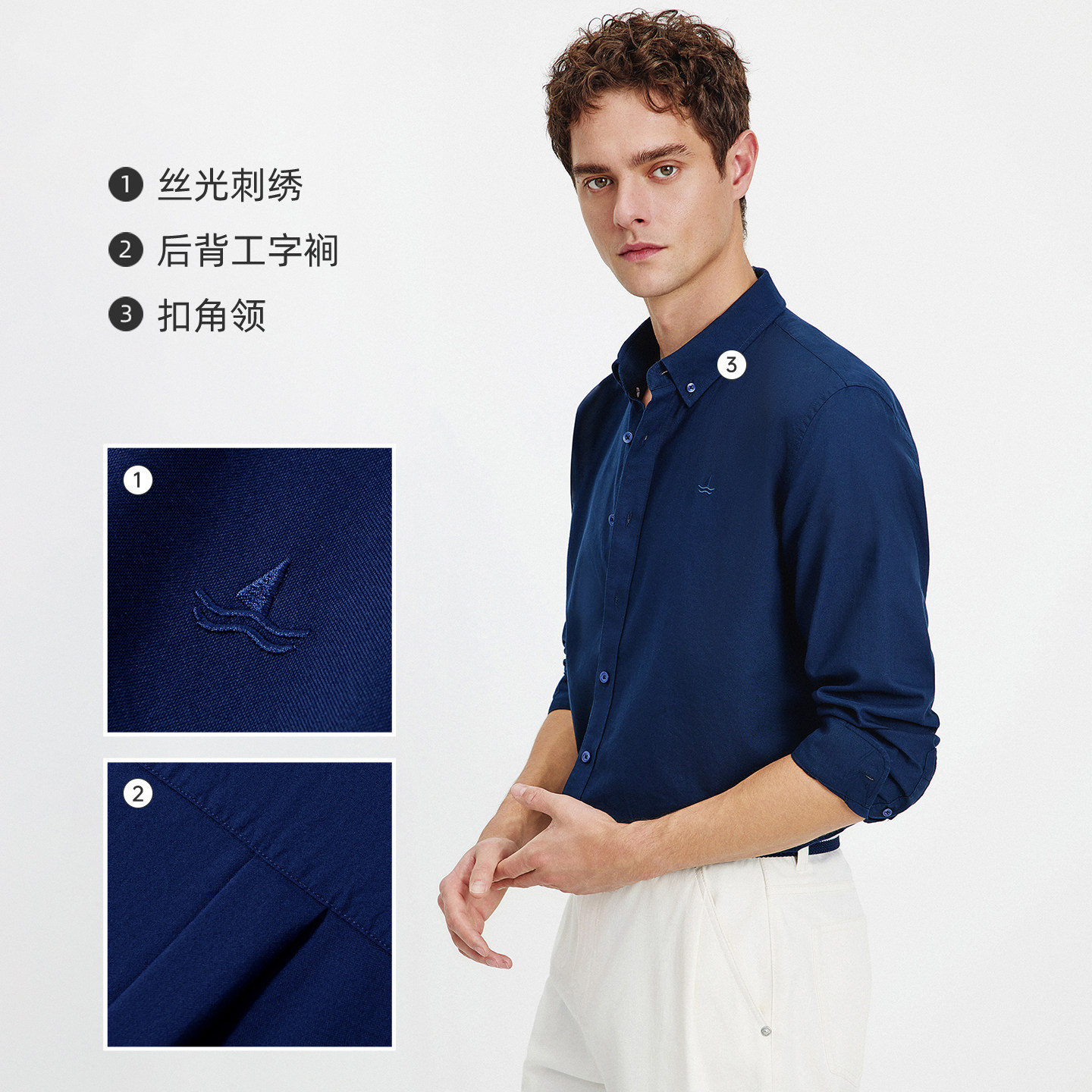 【纯棉牛津纺】海澜之家商务长袖休闲衬衫春夏新刺绣大码可选男装