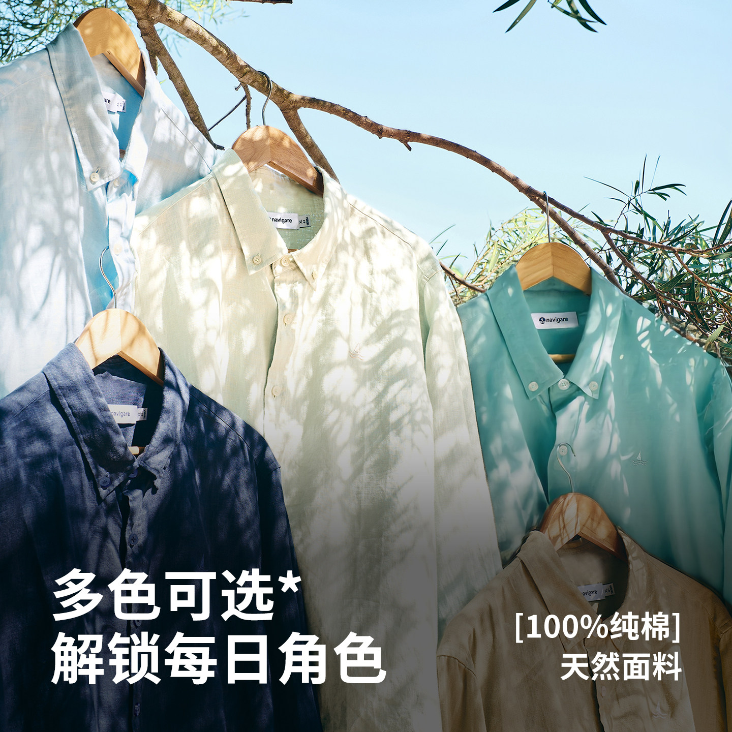 Navigare意大利小帆船纯棉休闲长袖衬衫男2026春季纯色百搭衬衣