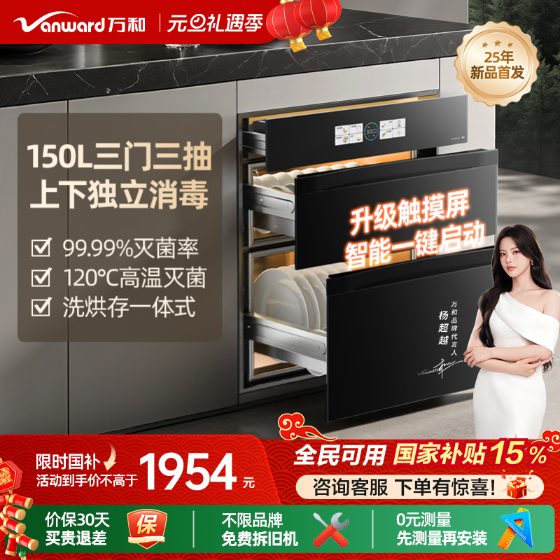 [政府补贴]万和新品二星消毒柜嵌入厨房碗筷柜台紫外线杀菌三层A6