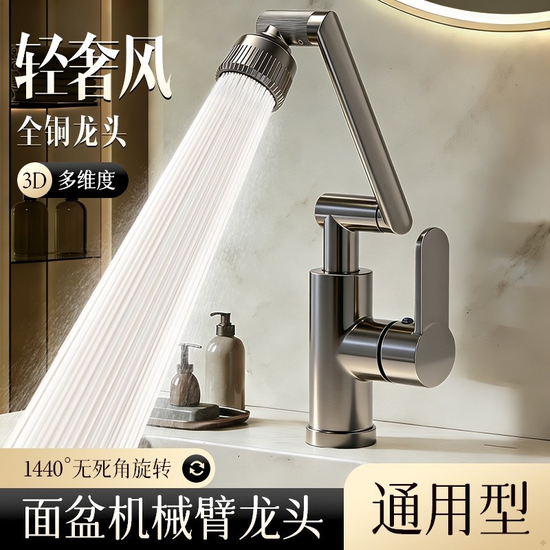 洗脸盆水龙头冷热万向旋转卫生间洗漱池上盆厨房全铜两用面盆加高
