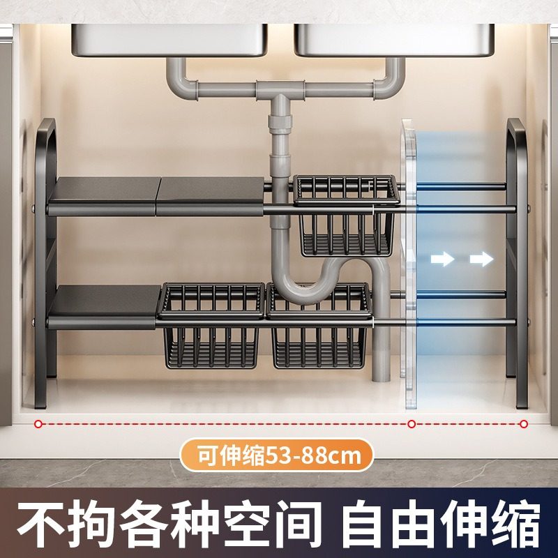厨房收纳置物架可伸缩橱柜内锅具收纳架子水池下水槽储物柜整理架
