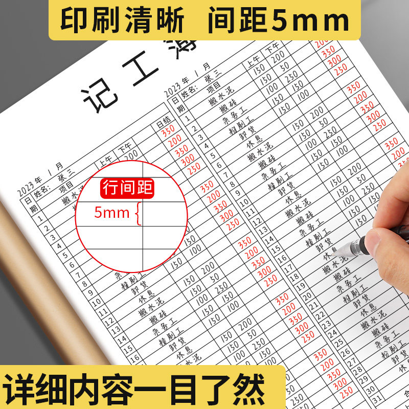 记工本31天2026年工地建筑员工个人日出勤本记工簿上班签到记录表临时工工时登记簿出勤本工天记录工日本B1