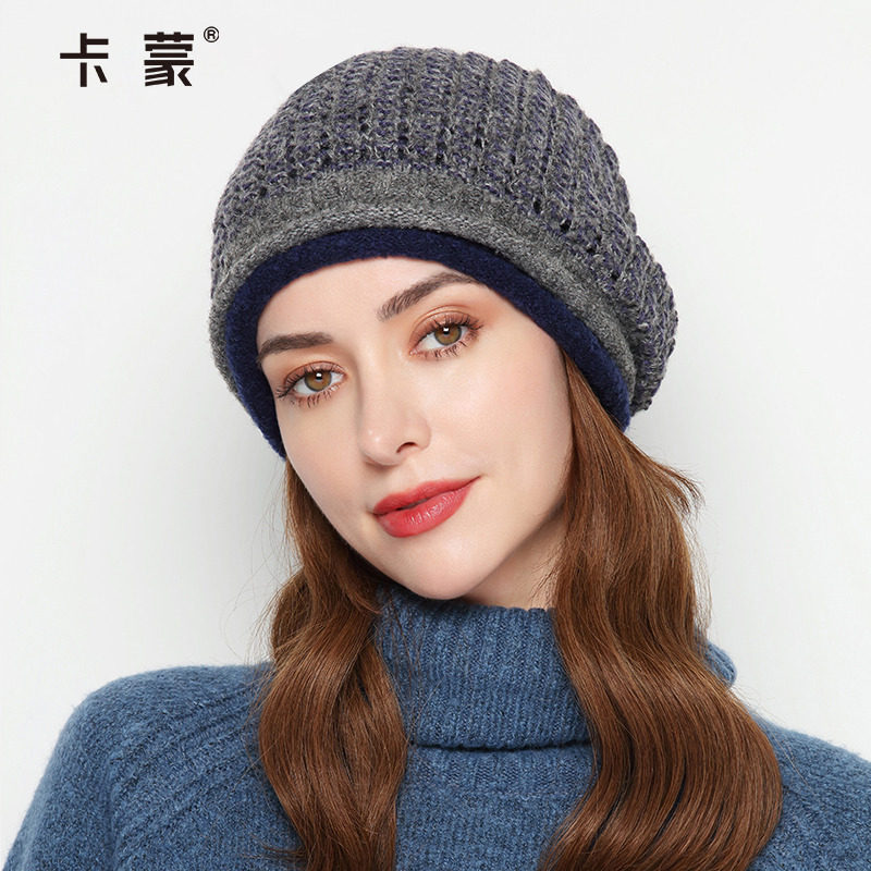 卡蒙帽子女冬冷帽羊毛防寒保暖针织帽毛线帽时尚堆堆帽护耳帽棉帽