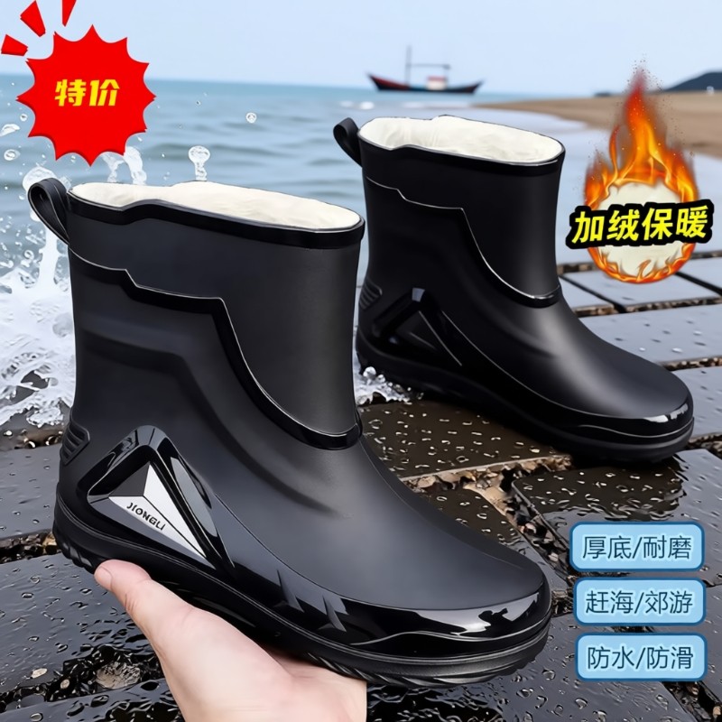 德国高级感加绒雨鞋男款时尚新款加棉保暖骑手防滑防水鞋钓鱼雨靴